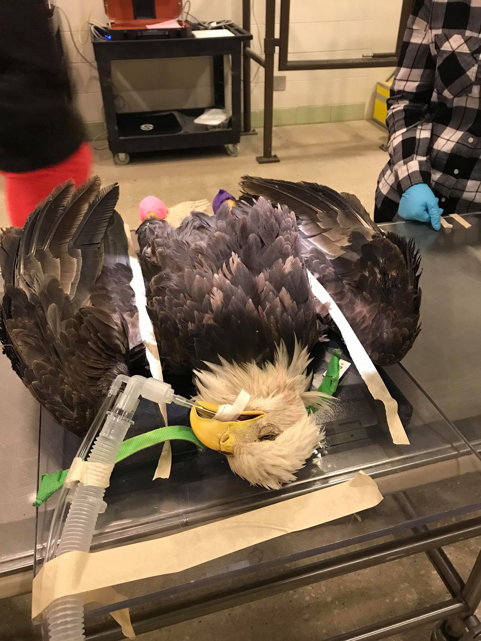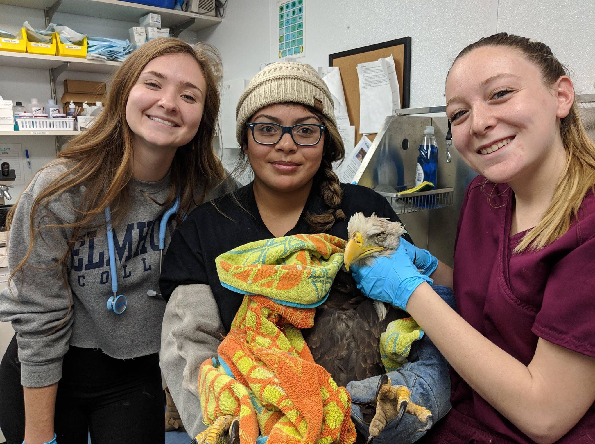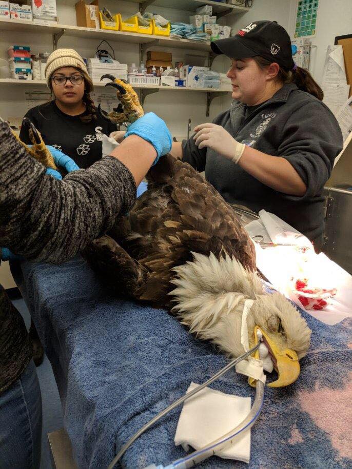 On Halloween, this female young adult bald eagle was transferred to the clinic from the Illinois Raptor Center after being hit by a car.